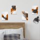 Set of 4 modern abstract organic shapes and botanical leaves, wall art.