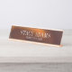 This desk name plate design features a clean and modern abstract bronzy tone foliage texture background.