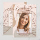 This elegant & chic graduation announcement card, features delicate calligraphy script and beautiful modern abstract artwork in shades of blush pink and taupe. The graduates photo highlights the front of the card while the back of the card offers personalised text spaces for information about the graduation and future journey.