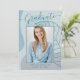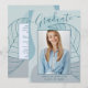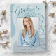 This elegant & chic graduation announcement card, features delicate calligraphy script and beautiful modern abstract artwork in shades of icy aqua blue. The graduates photo highlights the front of the card while the back of the card offers personalised text spaces for information about the graduation and future journey.