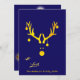 Back: an abstract shining Christmas tree in faux gold. Blue background colour.