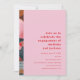 Set the tone for a fabulous engagement party celebration with this vibrant colour scheme of pink and red. This colourful invitation has a designer look with terracotta pink light blue rounded shapes over a dark blue background. The text template in contemporary crisp type face with a modern vibe and carries out the theme beautifully. Original artwork by Caroline Bonne Müller.