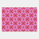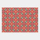 This set of three wrapping paper sheets presents a vibrant and captivating display of geometric artistry. Each sheet boasts a unique, kaleidoscopic pattern that is sure to add a touch of elegance and intrigue to any gift. Dominated by a warm pink hue, the first sheet features intricate geometric shapes that come together to form star-like patterns. The design is reminiscent of a kaleidoscope, with its symmetrical patterns and mesmerising array of colours. The middle sheet is a riot of colours, with reds, oranges, greens, and blues coming together in complex symmetrical formations. The design, which resembles a floral or star pattern, is both intricate and visually striking. The third sheet combines elements from the first two designs, featuring similar geometric shapes but with an expanded colour palette that includes greens and blues. This sheet is the most colourful of the three, offering a harmonious blend of symmetry and colour.
