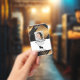 Company employee identification badge with templates created for you. Background is a modern abstract in black, white, and gold.