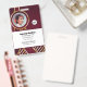 Company employee identification badge with templates created for you. Background is a modern abstract in a burgundy, white and gold.