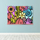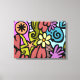 Modern Abstract Cubism Art canvas wall art. Multicolored modern art outlined in black includes abstract images of flowers, face, eye, stripes, scrolls, in blues, greens, purples, yellow, dusty rose and rust. Puts the wow factor in your decor. Personalise it by choosing Tile This Image and enlarging or reducing the images. You can also add text and images of your own.