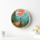 Modern Abstract Forest, Mountains, and Sunrise Clock