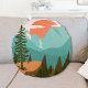 Introducing our Modern Abstract Forest, Mountains, and Sunrise Round Pillow. Featuring landscape illustration in vintage style. Suitable for as a gift for nature, camping, and hiking enthusiasts or for baby boys nursery decor.