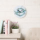 Modern Abstract Fractal Blue Turquoise Grey Name Large Clock
