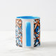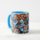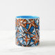 This is a Habatour Creations authentic coffee mug, adorned with an modern abstract geometric digital pattern design with shapes that reminiscent of optical illusions
