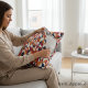 Elevate your bedroom with this modern abstract pillow case, duvet cover, Accent Pillows featuring a captivating geometric leaves pattern. The intricate design in shades of deep red, navy blue, and warm orange brings a contemporary and stylish feel to any space. Made from soft, comfortable fabric, it’s perfect for adding a vibrant touch to your home decor.