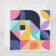 The design highlights a modern minimalist graphic design approach, with clean lines and structured patterns balanced by playful bursts of color. Circles, triangles, squares, and abstract forms overlap and intersect, creating a sense of movement and rhythm across the card. The arrangement feels dynamic yet refined, embodying a trendy hipster artsy artistic style that appeals to those who appreciate modern abstract expression.