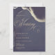 Abstract dark midnight navy blue and gold painterly wedding invitation.