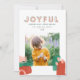 Modern abstract graphic red, pink + green and bold typography joyful holiday photo card. With hand painted splotches. Part of a bright, fun holiday collection.