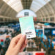 A name tag with an abstract border along the top with green and blue swirly colours. A soft and summery design.