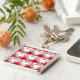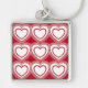Keychain in a tiled wallpaper print of overlapping hearts in a modern, industrial chic, abstract pattern - white hearts accented with dark red on a deep lipstick red background