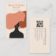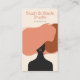 This modern hairstylist business card is designed to elevate your branding while showcasing your unique style and personality. It features an artistic, hand-illustrated faceless woman with flowing hair, paired with a minimal outfit and set against a soft, earthy neutral background with subtle texture. The contemporary illustration adds a chic, fashion-forward feel that’s perfect for beauty professionals.