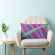 Modern abstract cross diagonal lines pink blue purple teal turquoise artsy lumbar pillow. 80s-inspired vintage colour burst neon lights ribbons.