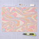 An inspiring abstract fluid art in peach fuzz, pristine pink, and dusty blue pastels creates a vibrant and colourful marble design. Perfect for adding a captivating piece of art to your special celebration.