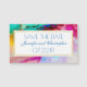 A wedding save the date magnetic business card. Designed with a fancy artistic abstract design. Watercolor painting with the colours mixing and mingling creating a nice flowing marbled pattern. A white frame with a faux gold foil border layered over top with your personalised text written inside.