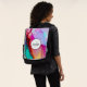 Personalised backpack with your name and initial inside a white circle. Background is a fancy artistic abstract design. Watercolor painting with the colours mixing and mingling creating a nice flowing marbled pattern.