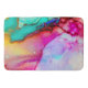 A bathmat with a fancy artistic abstract design. Watercolor painting with the colours mixing and mingling creating a nice flowing marbled pattern.