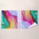 Bath towel set with a fancy artistic abstract design. Watercolor painting with the colours mixing and mingling creating a nice flowing marbled pattern.