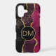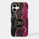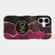 This unique phone case features an exquisite abstract design in maroon red, violet purple, and gold. Your three letter monogram is in matching gold on a gold framed black circle banner, and an overlay of silver and gold star confetti adds a bit of sparkle. Elegant!