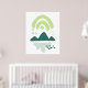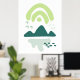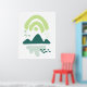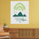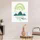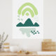 Trendy wall art features abstract mountain and rainbow with lake reflection .