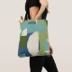 Personalised abstract tote bag features shades of blue, green and off white abstract design on both sides. Open top and black double shoulder straps for easy carrying. Kimberly Brett.