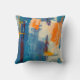 This modern abstract pillow will add a pop of modern to any decor with eye catching orange and blue.
