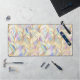 Stylish and functional, this desk mat features an iridescent-inspired leaf pattern in soft pastel hues with elegant gold-style detailing. The flowing botanical design brings a modern, artistic touch to your workspace while creating a polished surface for your keyboard, mouse, and daily essentials. Perfect for home offices, study spaces, or creative setups, this desk mat adds comfort, colour, and refined style to your desktop.