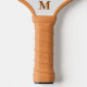 This modern pickleball paddle design features an abstract patchwork pattern with your name or initial in handwritten brown text for a look that is simple and stylish, yet professional.