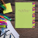 Tell you favorite teacher how much they mean to you and say thank you with this beautiful, abstract pattern notebook featuring original artwork from the creator behind Useful & Beautiful. The multi-layered, multi-colored bright polka dots against a lime green background, placed along the edge the note book design, are bounded by a contrasting fine edge to really make the colors pop in this elegant and classy design. Personalize this notebook with your teacher’s name to say thankyou for all they do for you. They can use it in school or at home to brighten their day.