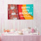 Looking for a stylish colourful abstract birthday banner for your birthday party, then this is the banner for you! Featuring your favourite photographs laid out a strip of 3, text which reads 'happy birthday' and easily personalised by adding the age and name.the font styles, sizes and colours can be changed by clicking on the customise further link after personalising.