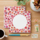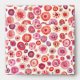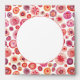 Watercolor geometric circles abstract flower painting in warm jewel colours of red, orange, pink and purple.