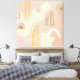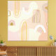 Modern abstract art for the contemporary office with trendy rainbow on a backdrop of modern shapes in beiges, pinks and coffee.