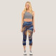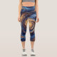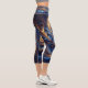 Modern Abstract Space Royal Blue and Gold Swirls Capri Leggings