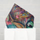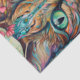 A colourful illustration of a cat in bright colours and floral patterns. Great for gift wrapping or decoupage and craft projects.