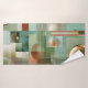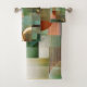 Bath towel set featuring a modern abstract design in green, teal and gold.