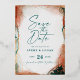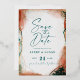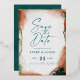 Elegant Abstract Ethereal Watercolor Teal & Copper Wedding Save the Date Cards with choice of real foil in rose gold, silver, or yellow gold. This modern wedding invite is beautify hand-painted with rich colours that are perfect for Fall. Shown in the Dark Teal Wedding Colour Palette colorway of: Dark Teal Peacock Green, Copper Rust, Dusty Gold, Almond Grove, and Bisque Beige. With real Metallic foil printed details, and a gorgeous signature script font with tails, the ethereal watercolor wedding collection is sure to make your wedding memorable and beautiful! To see more, search for Chic Paperie's 2021 wedding collections to see more trendy designs and wedding colours for this year.