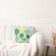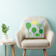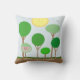 Modern abstract oval and circle green trees and sun on light blue background Throw Pillow. Ideal for nature lovers. Green colours bring us a sense of peace and calmness. Home Sweet Home text can be personalised.
