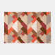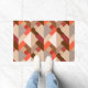 Doormat in a Mid-Century Modern design of layered triangles in shades of brown, taupe, beige, rust and camel, accented with mandarin orange