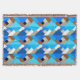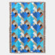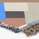 Throw in a Mid-Century Modern design of layered triangles in shades of cobalt blue, turquoise, cocoa brown, and taupe tan, accented with white