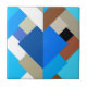 Large Ceramic tile in a Mid-Century Modern design of layered triangles in shades of cobalt blue, turquoise, cocoa brown, and taupe tan, accented with white