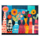 Colorful and cheerful modern illustration of vase of flowers.