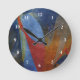 The clock did not take as long to arrive as I thought it might and was extremely well packaged. I didn't do the measurements so I didn't realize it is a little smaller than the average clock but that does not matter (just make sure you check if that's important to you).It is really nifty! It seems very solid and well made not flimsy at all. It has been going well and has kept good time in its few weeks on my wall. Nice product. Gets noticed too! Nicer in real life than the picture but true to the picture