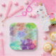A stunning abstract design featuring soft, ethereal watercolor clouds in a vibrant palette of purple, teal, lime, and pink. This artistic pastel wash creates a dreamy, modern aesthetic perfect for personalised stationery, home decor accents, or unique gift wrapping. Ideal for those who love contemporary fine art textures.