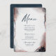 Modern Abstract Ethereal Watercolor Moonlight Blue Wedding Menus. This modern Design is beautify hand-painted with rich colours that are perfect for fall or Winter. Shown in the Moonlight Dark Blue Wedding Colour Palette colorway of: Moonlight Navy, Champagne, Brown Sugar, Rose Quartz Pink, and Dusty Blue. With faux Metallic glitter foil details, and a gorgeous signature script font with tails, the ethereal watercolor wedding collection is sure to make your wedding memorable and beautiful!