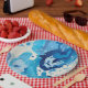Modern abstract with pastel shades of blue ocean paper plate